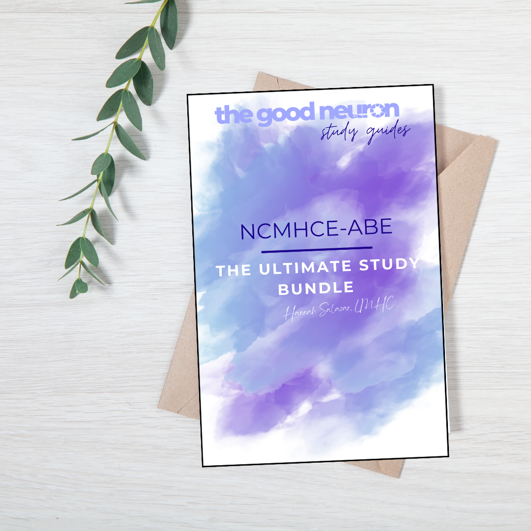 When Hannah was a intern, she noticed the lack of community spaces and reliable information about the NCMHCE licensure exam. The Good Neuron (TGN) was born out of a necessity and passion for quality training for future counselors. The study guides you'll find here are created by Hannah and leave out a lot of the 'fluff' you find elsewhere.