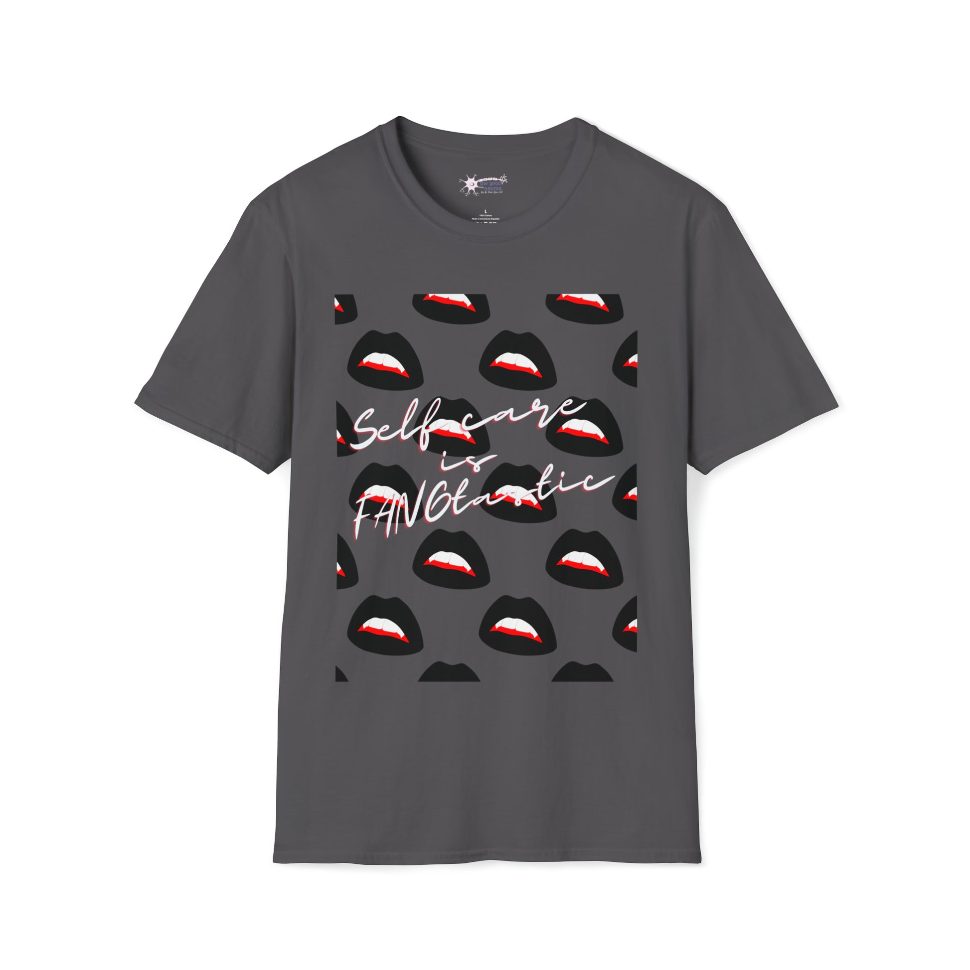 Nuestra camiseta presenta un diseño atrevido y cautivador con la frase empoderadora "Self Care is Fangtastic" en un lugar destacado. El texto está organizado de forma divertida, con una ilustración de colmillos que añade un toque único y enfatiza el mensaje de empoderamiento.