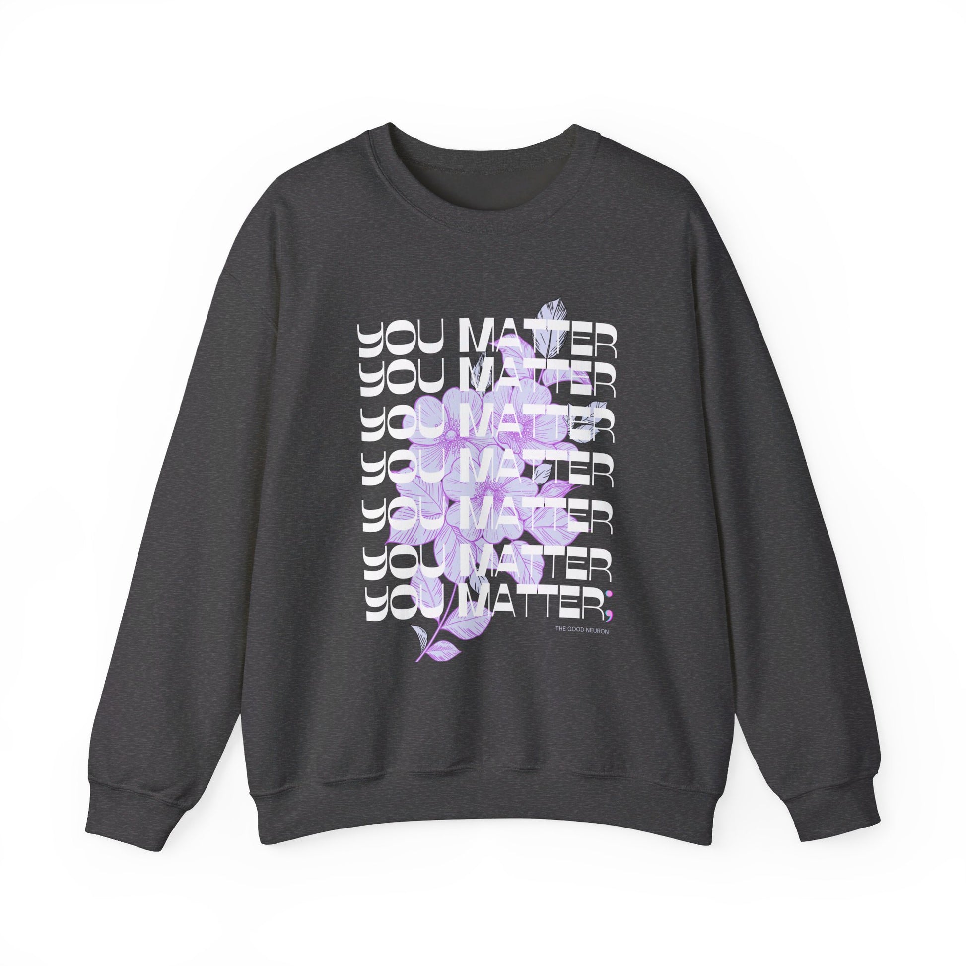 Envuélvete en calidez y positividad con nuestra sudadera 'You Matter'. Esta prenda acogedora y reconfortante es más que una simple capa; es un recordatorio sincero. Adornado con las sencillas pero profundas palabras "You Matter", es un cálido abrazo para tu alma. Ya sea que estés atravesando días fríos o afrontando los desafíos de la vida, deja que esta sudadera sea una afirmación constante de que tu presencia, tu viaje y tu bienestar son importantes. Úselo con orgullo, difunda el mensaje y abrace la calidez del amor propio con cada abrazo.