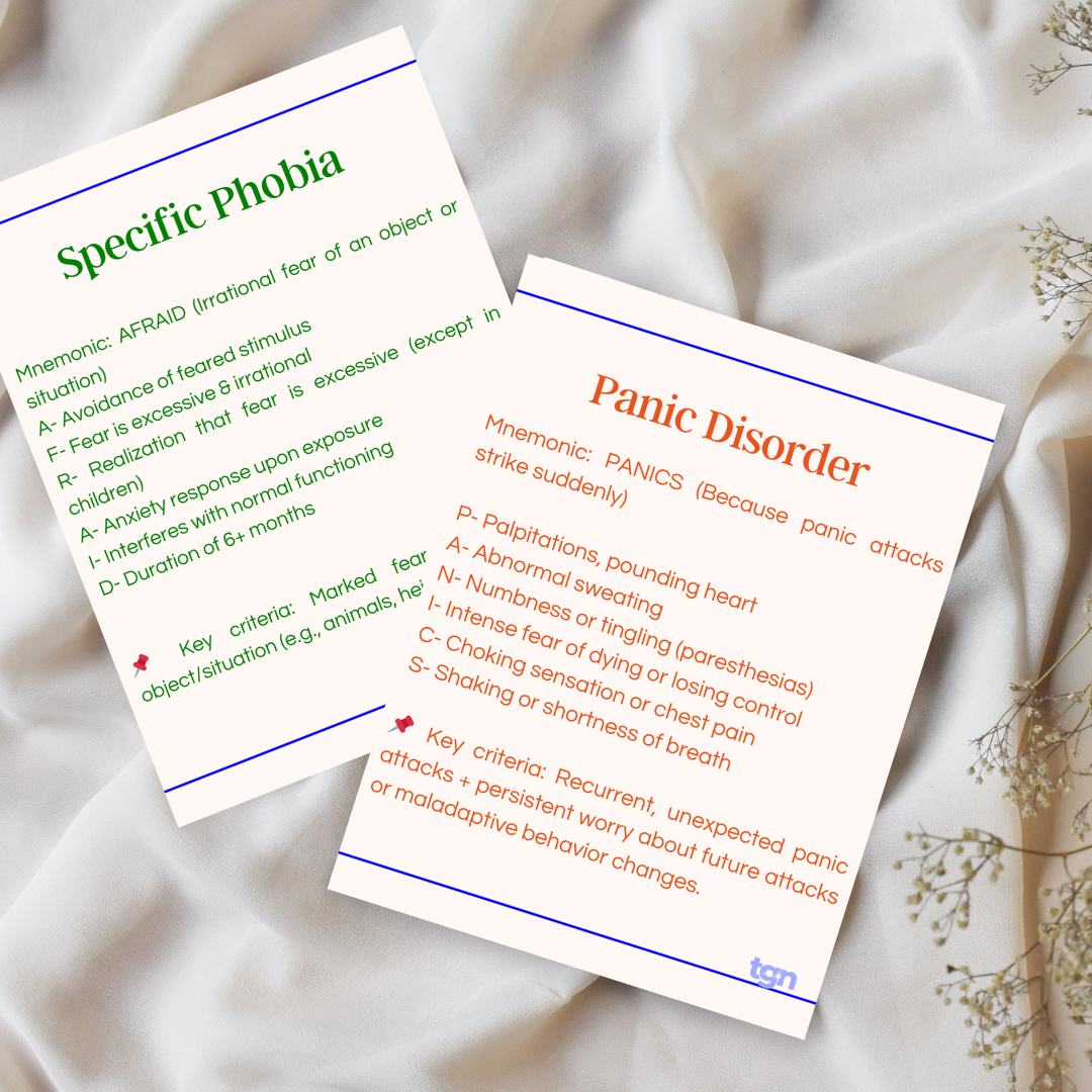 Anxiety Disorder Mnemonics Flashcards – DSM-5-TR Study Aid