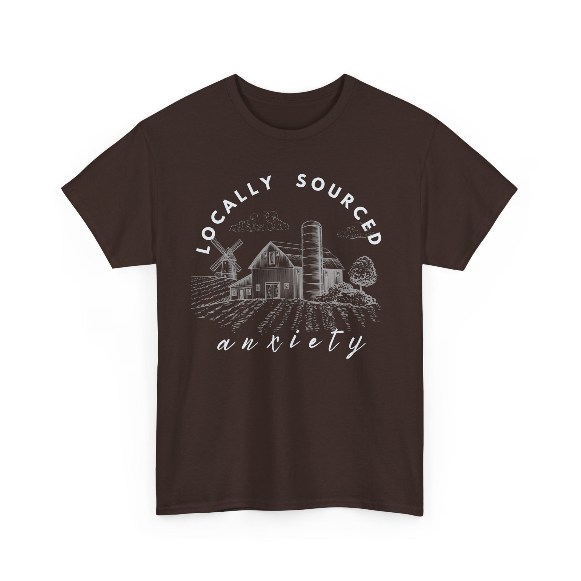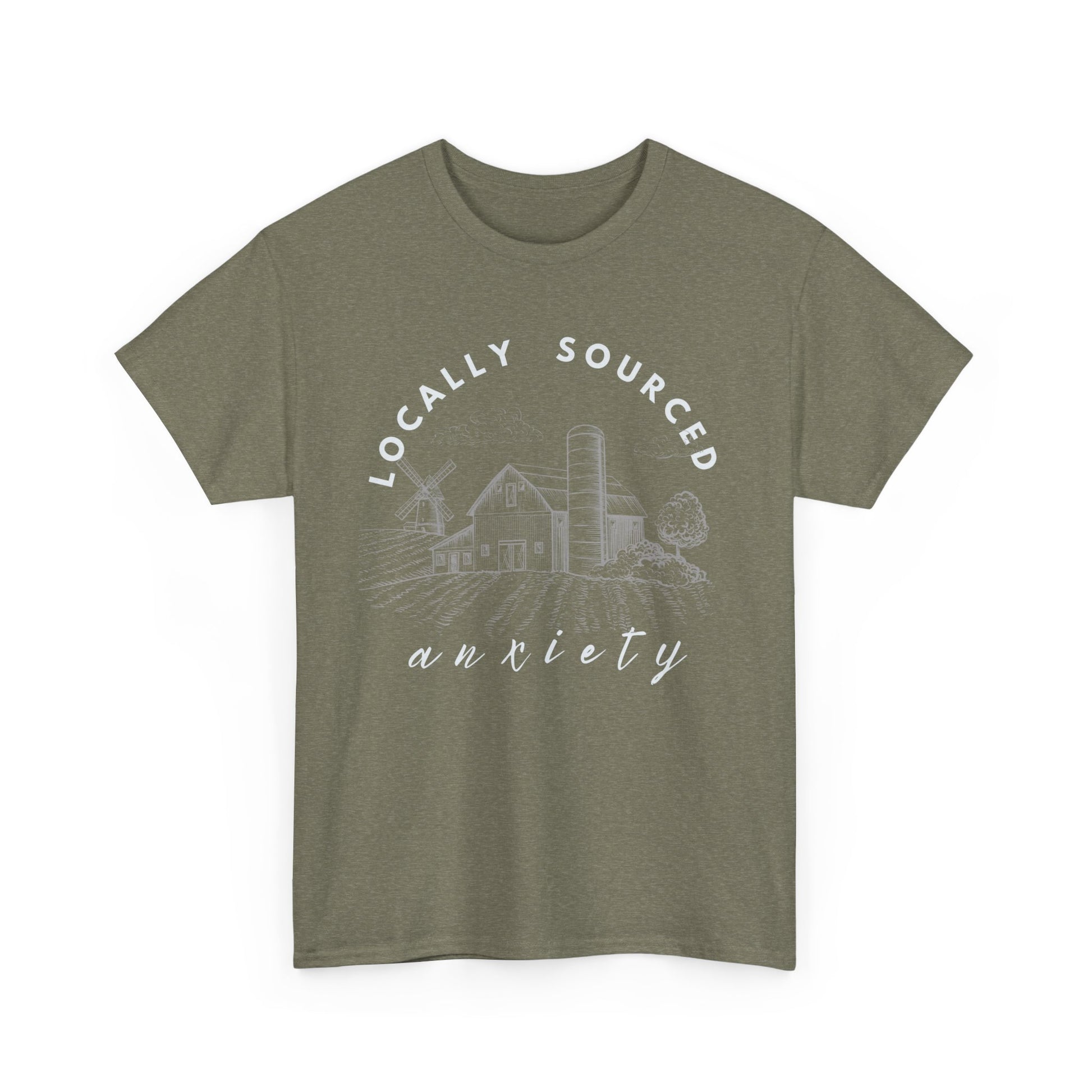 Join the movement of embracing life's challenges with a smile—get your "Locally Sourced Anxiety" Tee Shirt today and wear your resilience with pride.