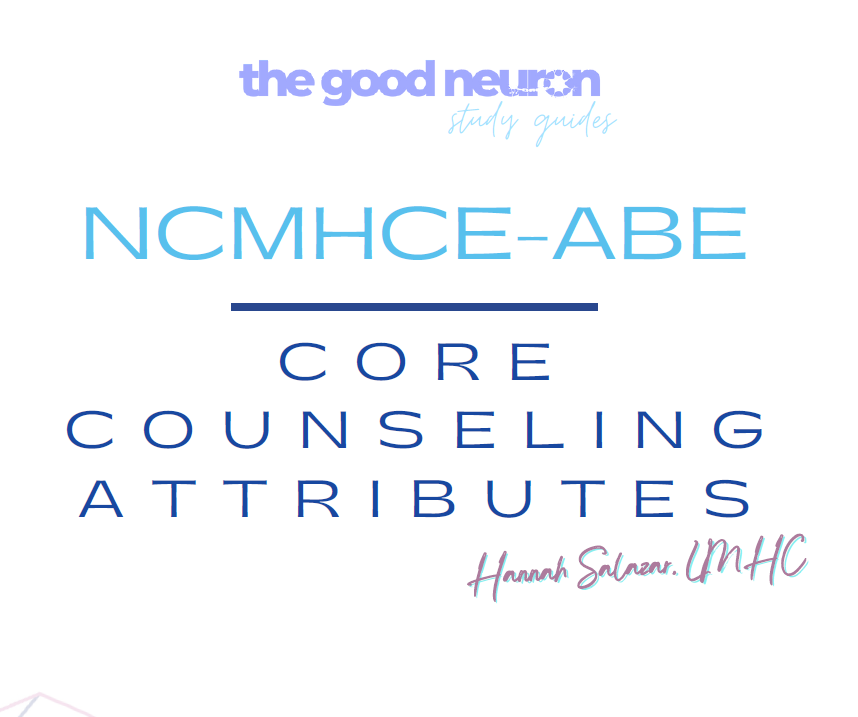 Study for the National Clinical Mental Health Counseling Exam with our NCMHCE Core Counseling Attributes Study Guide. This comprehensive guide provides explanations and practice questions to help you master the core attributes necessary for success. Get ahead with confidence and ease. This product is emailed to you so be sure to input your email at check out. If you did not receive it automatically, please email info@thegoodneuron.com with your order number. Thank you!
